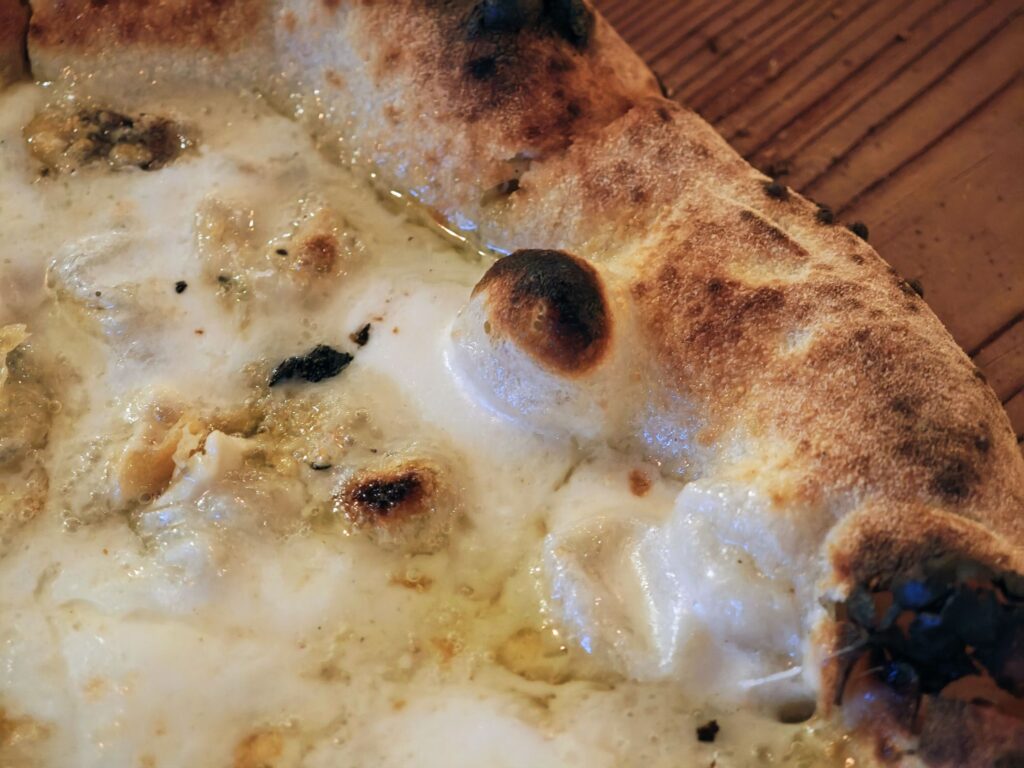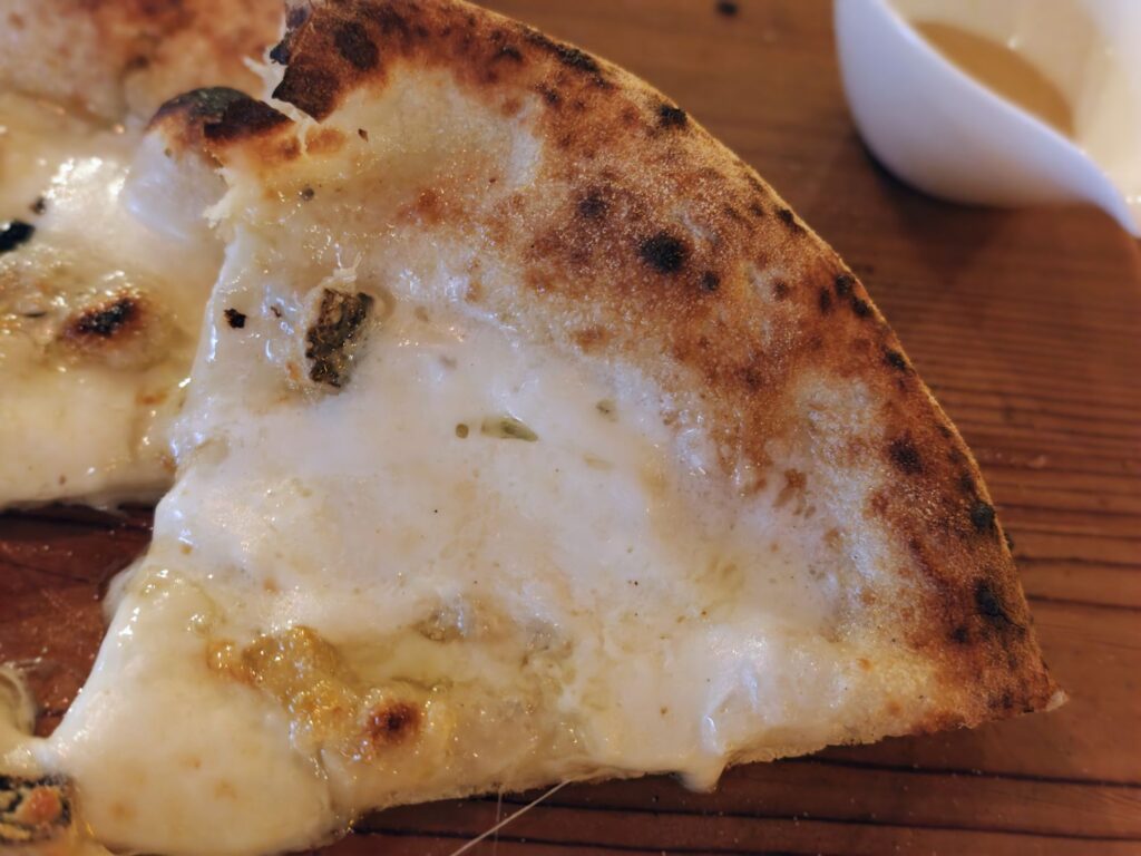 食べていてすごく面白いピザ生地。ホエーの恩恵で生地の中に乳製品特有のまろやかな風味がするのも実に印象的です。